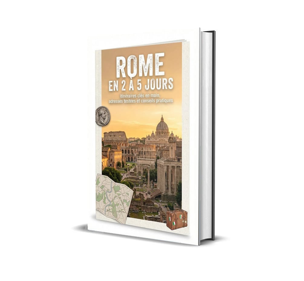 Téléchargez Rome en 2 à 5 jours – Itinéraires clés en main, adresses testées et conseils pratiques, un ebook pensé pour transformer votre séjour en véritable city-trip optimisé. Vous y trouverez des programmes jour par jour adaptés à des séjours de 2, 3, 4 ou 5 jours, pour enchaîner Colisée, Forum Romain, Vatican, Fontaine de Trevi, Panthéon, Trastevere et Villa Borghese sans perdre de temps.